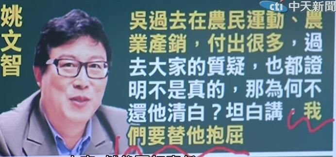 接著出場的是民進黨臺北市長候選人姚文智,他說吳音寧啊過去在農(nóng)村社會、農(nóng)村運動及農(nóng)業(yè)產(chǎn)銷長期付出很多,“過去大家質(zhì)疑吳的問題,但事后證明都不是真的”,而針對如今外界對吳音寧的種種不滿,姚更大呼“我們真的要為吳音寧抱屈”;