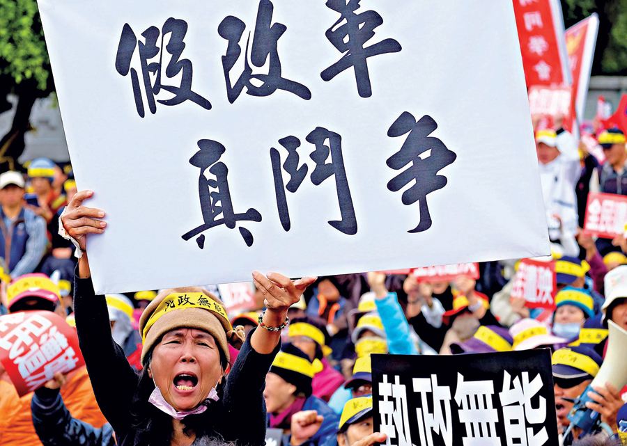 要知道蔡英文當(dāng)局全力推行的年金改革,理論上應(yīng)該是“全民”年金改革;不過在實際操作上,蔡英文卻把手術(shù)刀直接割向傳統(tǒng)國民黨“鐵票”群體——軍公教警消的頭上。而對于占比最大、金額最多的勞工群體,由于正值選舉年,蔡英文則遲遲不敢動手。