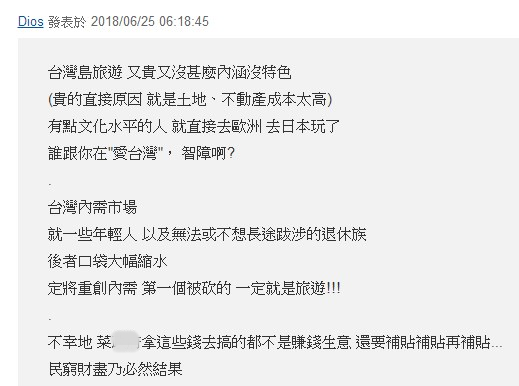 旅游業(yè)在臺灣經(jīng)濟中的比重一直很可觀,且旅游業(yè)涉及到的行業(yè)及人數(shù)相當(dāng)龐大,可以說,旅游業(yè)的興衰將直接影響很多臺灣老百姓的實際生活水平。在大陸游客驟減,島外旅游收入連年減少的大背景下,臺當(dāng)局強力推動的“年金改革”,讓島內(nèi)旅游也大幅縮水,好巧不巧的起到了“火上澆油”的效果。
