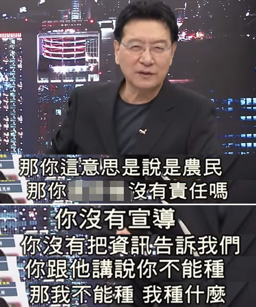 聽完林聰賢這番話,臺灣資深媒體人趙少康顯然不淡定了,他表示,民進(jìn)黨當(dāng)局不做事先的宣導(dǎo),也沒有分享相關(guān)資訊,只是一句輕描淡寫的“聰明種”,就想要把責(zé)任推給農(nóng)民嗎?