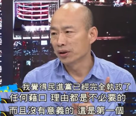 韓國(guó)瑜對(duì)此事的看法很清晰,兩個(gè)層次。第一,你都全面執(zhí)政了,還找什么借口?