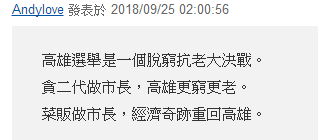 有網(wǎng)友力挺韓國瑜,為他打氣加油,當(dāng)然也沒忘了撒一把陳其邁的家族黑料: