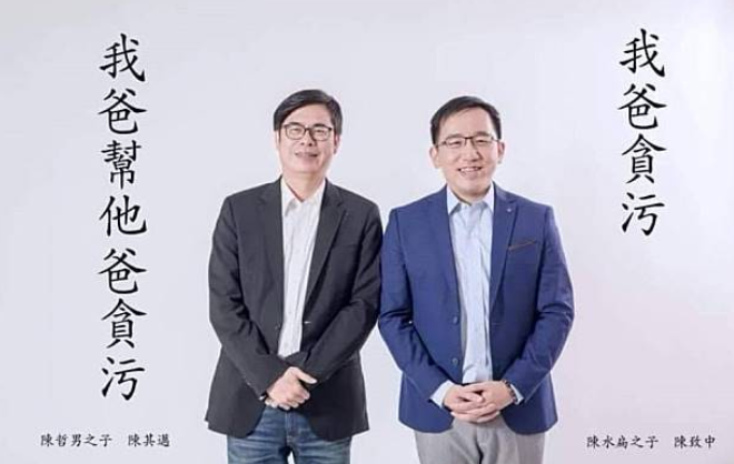 下面這張圖跟網(wǎng)友的評論堪稱絕配了~陳水扁之子與陳哲男之子的“貪污二代CP”.