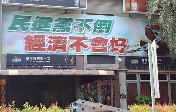 高雄某知名餐廳曾在門口掛上“民進黨不倒 經(jīng)濟不會好”海報。