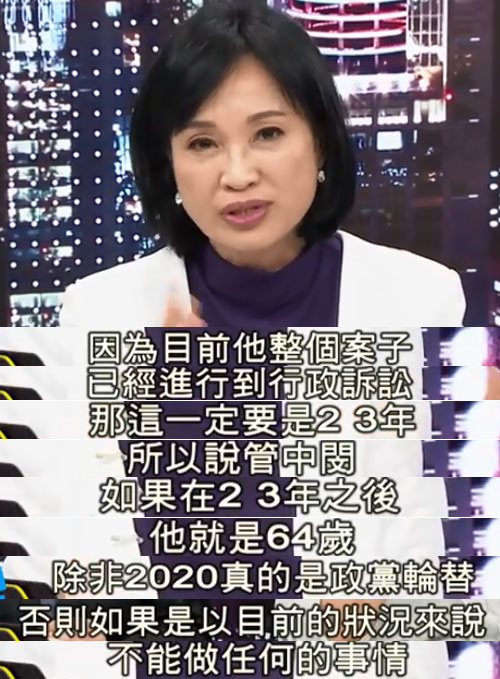 對于管中閔的言論,國民黨“立委”柯志恩也表示非常理解,畢竟案件進行到行政訴訟的階段,耗費的時間至少在兩三年,“除非2020年真的政黨輪替,否則以目前的情況而言,管中閔將長時間處于‘下崗’階段!