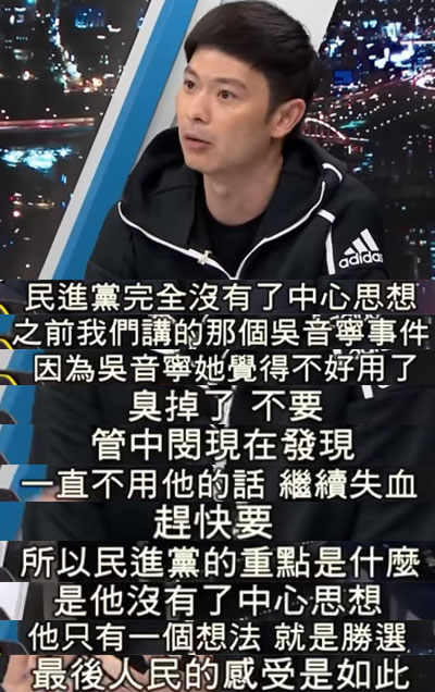 針對(duì)蔡英文當(dāng)局頻頻轉(zhuǎn)彎的做法,國民黨準(zhǔn)臺(tái)北市議員李柏毅甚至表示,民進(jìn)黨已經(jīng)失去了自己的“中心思想”,“看到吳音寧不好用,轉(zhuǎn)手丟掉;看到管中閔不用不行,就趕快要。這樣的民進(jìn)黨只有一個(gè)想法,那就是勝選,民眾的感受就是如此。”