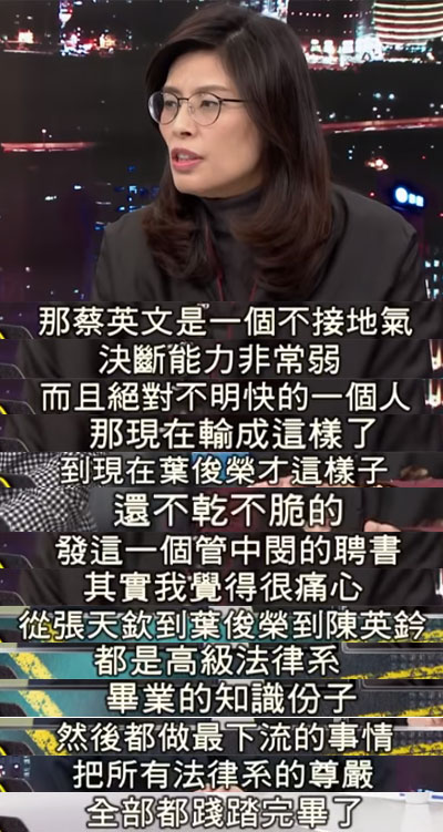 而對(duì)于葉俊榮的說辭,國民黨“立委”王育敏也提出了質(zhì)疑,“難道11月24日之前,這三點(diǎn)原因就不存在嗎?”換句話說,臺(tái)“教育部”如今的做法不過是在“清掃戰(zhàn)場”。王育敏表示,“如果‘卡管’案延續(xù)至2020年,到時(shí)藍(lán)營只要喊出一句口號(hào)‘票投國民黨,臺(tái)大有校長’,那么民進(jìn)黨將繼續(xù)倒。所以為了排除這樣的障礙,蔡英文當(dāng)局才會(huì)突然轉(zhuǎn)彎!