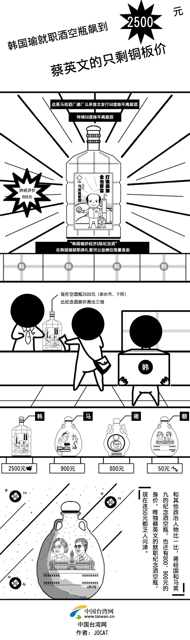 【漫畫臺灣】韓國瑜就職紀念酒瓶飆升2500元 蔡英文的只剩銅板價