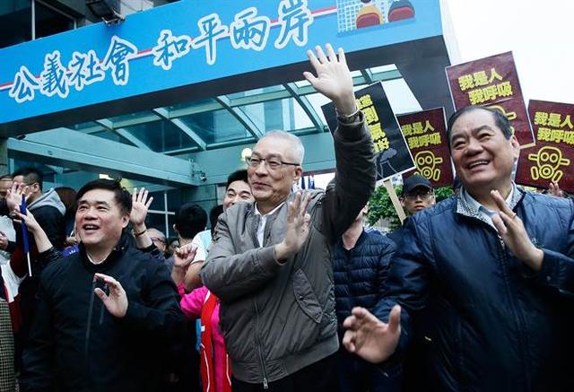 國民黨元旦升旗吳敦義喊‘團(tuán)結(jié) 再執(zhí)政’ 結(jié)果旗子纏成一團(tuán)飄不起來