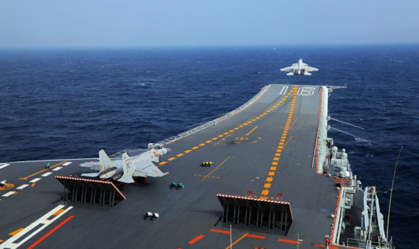 中國海軍遼寧艦訓(xùn)練中。(圖片取自網(wǎng)絡(luò))