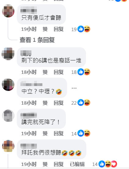 此言一出,立刻被藍(lán)白支持者瘋狂“點(diǎn)贊”。有社交平臺(tái)博主發(fā)文表示,“第一次認(rèn)同暐瀚”,并嘲諷“團(tuán)結(jié)十講”一直以來(lái)“成效良好”,讓庶民有感,每聽(tīng)一講“團(tuán)結(jié)感就上升10%”,“說(shuō)好十講就必須講完”,“支持”。還有網(wǎng)友嘲諷,只講四講難怪(支持率)40%,等賴(lài)清德“十講”講完,(支持率)就100%了;甚至有網(wǎng)友懷疑,黃暐瀚是不是看風(fēng)頭不對(duì),開(kāi)始當(dāng)藍(lán)營(yíng)的臥底了。