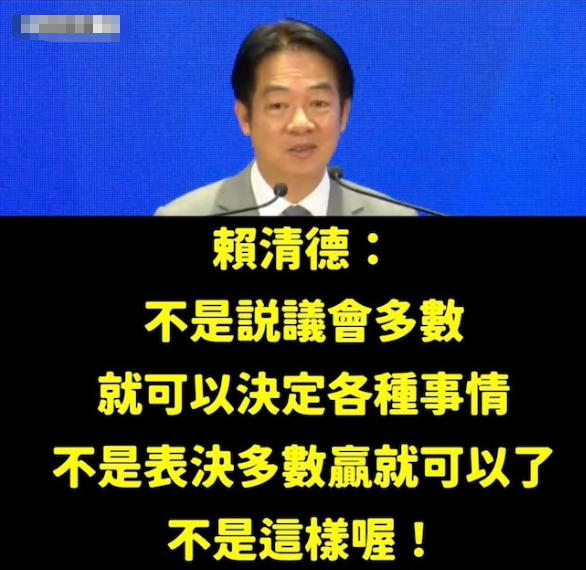 第三講似乎進(jìn)一步回應(yīng)了“雜質(zhì)說(shuō)”。為什么少數(shù)派賴(lài)清德敢把主流民意當(dāng)雜質(zhì)?賴(lài)清德的原話是這樣說(shuō)的,“不是表決多數(shù)贏就可以了,不是這樣哦!”