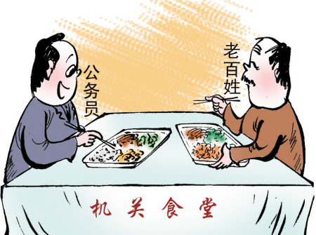 機(jī)關(guān)食堂只有對(duì)外開(kāi)放,讓老百姓監(jiān)督,才能剎住奢侈之風(fēng),或者說(shuō)才能還原真相。盡管機(jī)關(guān)食堂開(kāi)放會(huì)令一部分公務(wù)員不滿意,也給管理上帶來(lái)挑戰(zhàn),但是能換來(lái)更好的社會(huì)效果。因此,不妨把推進(jìn)機(jī)關(guān)食堂對(duì)外開(kāi)放,作為政府自身改革、群眾路線教育實(shí)踐活動(dòng)的一部分。還需要指出的是,機(jī)關(guān)食堂對(duì)外開(kāi)放貴在堅(jiān)持、貴在長(zhǎng)久,筆者期待更多百姓能嘗嘗“公家飯”。(馮海寧)