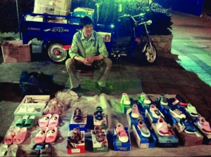 葛新峰在力寶廣場北側(cè)橋上擺攤 見習(xí)記者宋體佳攝
