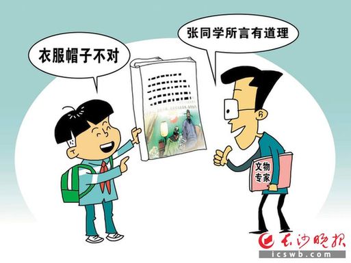 日前,北京二中亦莊學(xué)校五年級(jí)小學(xué)生張秋實(shí)寫信給人民教育出版社,指出語(yǔ)文教科書上一幅關(guān)于宋朝知縣的配圖有誤,知縣著裝應(yīng)為青綠色而非紫色,圖中官帽上下垂的帽翅也與歷史不符。就此,人教社課程教材研究所相關(guān)人員表示,目前暫未收到該信件,不過(guò)會(huì)就張同學(xué)反映的情況展開研判和探討,如確實(shí)不妥將改進(jìn)。(12月28日《北京晨報(bào)》)
