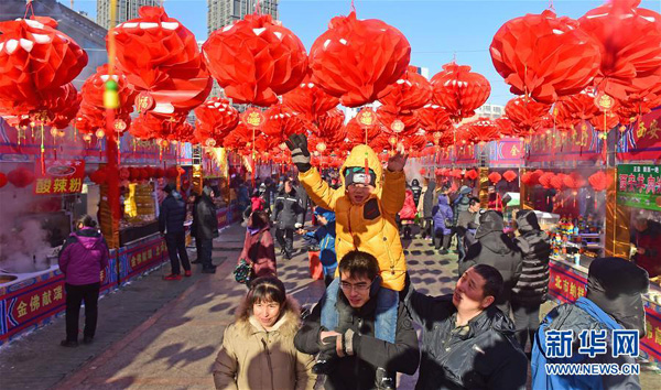1月30日,游客在廟會上參觀游玩。當(dāng)日是正月初三,在第36屆沈陽新春祈;仕聫R會上,市民逛廟會、看表演,歡度春節(jié)。新華社記者 楊青 攝