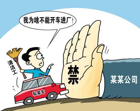 男子吳建國(guó)在東莞一家工廠(chǎng)做“環(huán)衛(wèi)班長(zhǎng)”,他攢錢(qián)買(mǎi)了私家車(chē)代步后,進(jìn)廠(chǎng)停車(chē)遭行政主管拒絕。該廠(chǎng)行政主管表示,老吳作為清潔工,公司已經(jīng)對(duì)他夠好了,不應(yīng)有太高要求,而且打工人員買(mǎi)車(chē)也沒(méi)必要,工資還不夠油費(fèi)呢。(3月6日《武漢晚報(bào)》)