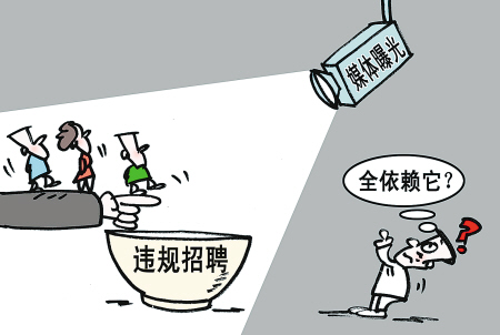 也就是說,如果沒有“網(wǎng)友曝光”,沒有媒體的跟進(jìn)和輿論的監(jiān)督,這些違規(guī)招聘可能至今仍未曝出。實(shí)際上,不僅僅是這幾個(gè)案例,公眾能看到的違規(guī)招聘丑聞,很多是由網(wǎng)友發(fā)覺和媒體曝光的。