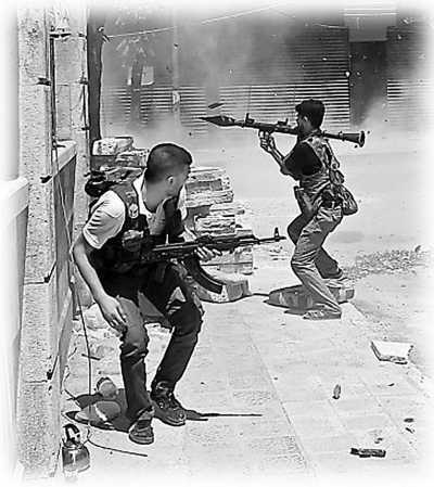 “敘利亞自由軍”向政府軍發(fā)射火箭推進(jìn)式榴彈