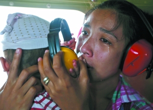 11日,吉萬一名母親在登上救援的直升機(jī)后激動落淚。