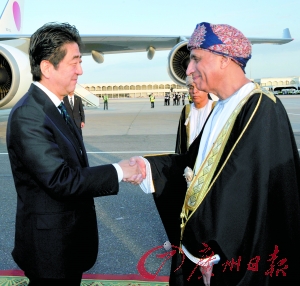 當?shù)貢r間1月9日,阿曼馬斯喀特,日本首相安倍晉三抵達訪問,受阿曼副首相接待。