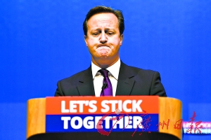 卡梅倫發(fā)表演講,桌上牌子寫著“讓我們在一起”。