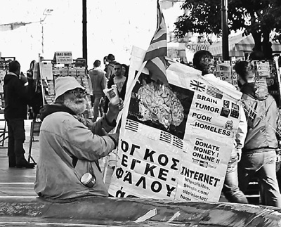 自債務(wù)危機(jī)爆發(fā)以來,希臘承諾實施以減薪、增稅、裁員和私有化為主要內(nèi)容的緊縮和改革政策。一系列的緊縮措施使民眾生活受到嚴(yán)重影響,約1/4的家庭陷入貧困。圖為今年1月希臘大選期間,在雅典市中心國會大廈前廣場乞討的老人。
