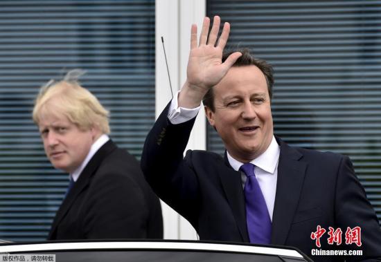 當(dāng)?shù)貢r(shí)間2015年4月22日,英國(guó)貝德福德,英國(guó)首相卡梅倫與倫敦市長(zhǎng)鮑里斯參觀(guān)當(dāng)?shù)匾患彝袃核,為大選造勢(shì)。