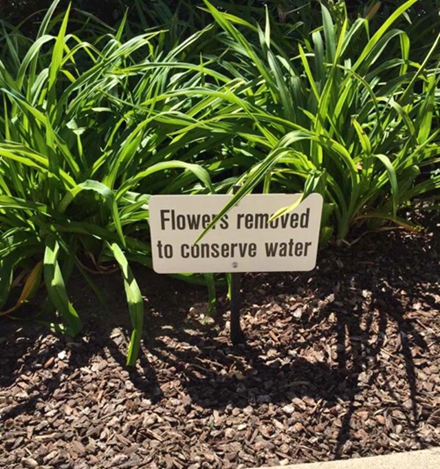 人民網(wǎng)舊金山5月5日電 (韓莎莎)硅谷一些公司前的花坪里新翻的土鋪著木屑,嫩綠的低矮草叢在陽光下閃著光。引人注目的是,不止一處花坪前豎著一塊木板,寫道:“為了節(jié)水,花被移除!