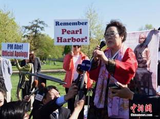 韓裔組織華盛頓慰安婦問題聯(lián)盟4月曾在華盛頓舉行記者會(huì),要求安倍訪美時(shí)就慰安婦問題進(jìn)行真誠(chéng)、直接的道歉,而不是擺出無(wú)辜旁觀者的姿態(tài)。87歲的慰安婦受害者李容洙表示,她愿意以歷史見證者的身份站在安倍面前,要求他為這段歷史道歉。