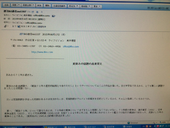 前不久收到了A同學的暑假作業(yè),題目是《戰(zhàn)后70年的歷史概括與今后的我》(譯者注:此為作者虛擬的題目。安倍講話無標題)。對于中學生的他來說,這肯定是一個非常難的題目。不難看出有家教協(xié)助完成的跡象。雖然這也是難免的,但不知道那些只為賺取打工錢的家教指導得如何。