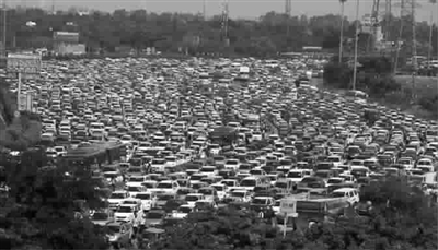 這條從印度首都新德里通往衛(wèi)星城古爾岡的高速公路經(jīng)常擁堵,令當(dāng)?shù)鼐用耦H為無奈。隨著一組照片近日曝光,這條高速公路的擁堵狀況令人咋舌。