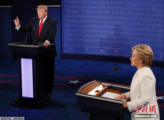 當(dāng)?shù)貢r(shí)間2016年10月19日,美國拉斯維加斯,2016美國總統(tǒng)大選第三場辯論也是最后一次辯論在美國內(nèi)華達(dá)大學(xué)拉斯維加斯分校舉行。
