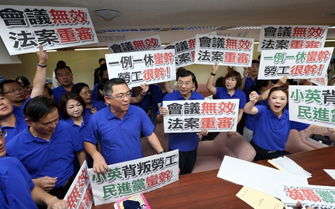 日前民進(jìn)黨“立委”不顧勞團(tuán)強(qiáng)烈反對(duì),強(qiáng)行在一片混亂中通過“一例一休”修改草案初審,最快下月在臺(tái)灣“立法院”表決。民進(jìn)黨“立委”的蠻橫行徑引起公憤,勞團(tuán)聲言要在明年的地方選舉中制裁民進(jìn)黨。去年民進(jìn)黨當(dāng)局硬推“一例一休”上路,結(jié)果民怨四起,不得不作出部分修改,但不僅未能平息坊間怒氣,反而又引發(fā)新一輪爭(zhēng)議!耙焕恍荨币呀(jīng)成為蔡英文當(dāng)局揮之不去的夢(mèng)魘。