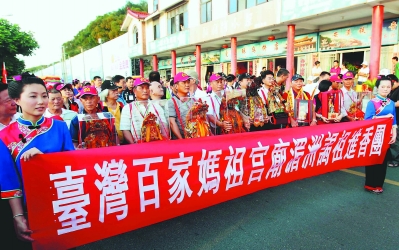 第三屆海峽論壇期間,百家媽祖宮廟的信眾奉請分靈媽祖像回湄洲媽祖祖廟安坐。 本報記者 林熙 攝