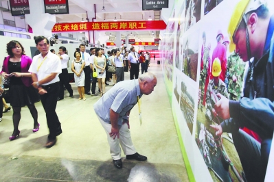 第四屆海峽論壇期間,參加職工論壇的嘉賓們在仔細觀看職工比賽的施工工藝。本報記者 林熙 攝