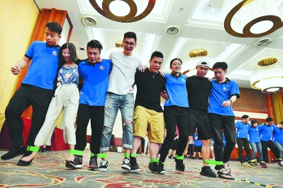 第九屆海峽論壇期間,兩岸青年在趣味競賽上齊心協(xié)作,奮力拼搏。本報記者 林輝 攝