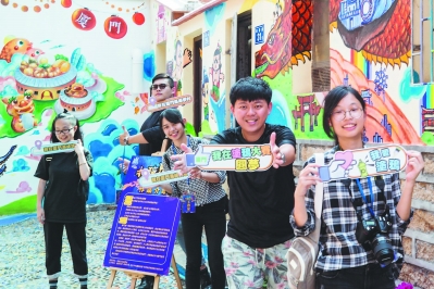 第十屆海峽論壇期間,參加首屆創(chuàng)意涂鴉大獎賽的臺灣團隊在作品前合影。本報記者 林熙 攝