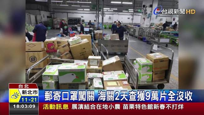 臺媒報道,1月底的兩天內,臺灣海關沒收了9萬多片臺灣民眾攜帶或寄送給大陸的口罩。臺財政部門在社交媒體上赫然警告:“口罩管制來真的,休想挑戰(zhàn)公權力。”