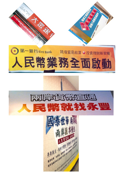 配文圖為臺北各銀行都在街頭掛出人民幣業(yè)務(wù)廣告。李煒娜攝