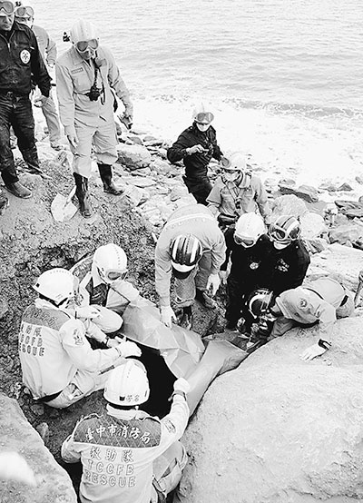 正在蘇花公路搜救的臺灣消防隊員。張修誠攝