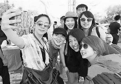 兩岸青年一同在廈門參加騎行后,興奮地自拍合影。張奇輝攝