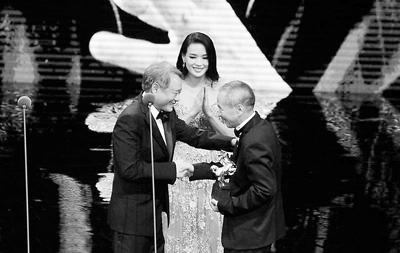 臺灣導(dǎo)演李安為侯孝賢頒獎(jiǎng),演員舒淇鼓掌祝賀。(資料圖片)