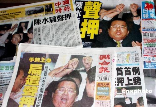 2008年11月12日,臺(tái)灣所有報(bào)紙都在頭版及其它版面重要位置刊登陳水扁被聲押的消息及報(bào)道。