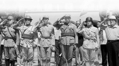 一起穿上軍裝來唱歌的7名年輕人,多半是新黨黨員,余下的則是認(rèn)同抗戰(zhàn)精神的高中生和大學(xué)生。不過,劉慶林老伯伯認(rèn)為,這樣的年輕人在臺灣只是少數(shù),“現(xiàn)在的小孩,你問他蔣中正和蔣介石是什么關(guān)系,想半天后告訴你,蔣中正可能是蔣介石的父親吧”!劉慶林是當(dāng)年的河北流亡學(xué)生,少年遍嘗國家動蕩的傷痛。