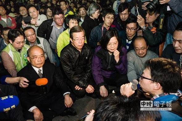 民進黨幾位重要人物日前也出現(xiàn)在反服貿(mào)活動中。(圖片來源:臺“中時電子報”)