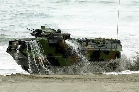 資料圖:臺(tái)軍的美制AAV7突擊車搶灘登陸
