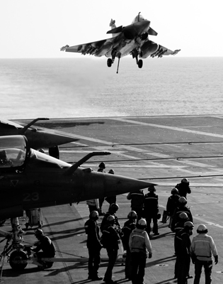 從利比亞上空返航的“陣風(fēng)”艦載機(jī)仍掛著炸彈。