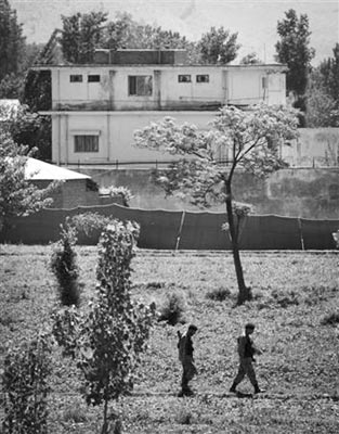 根據(jù)從艾哈邁德的電話中得到的線索,美國(guó)情報(bào)人員順藤摸瓜,找到了位于巴基斯坦首都伊斯蘭堡北部約120公里的阿伯塔巴德地區(qū)的一個(gè)大院。這棟表面平靜的建筑物體積約為周邊其他房屋8倍,配有鐵絲網(wǎng)護(hù)欄和高墻等罕見(jiàn)設(shè)施,有兩個(gè)限制出入的保安閘。它坐落在人口密集的城區(qū),卻沒(méi)有使用電話或互聯(lián)網(wǎng)服務(wù)。另外,這處住所內(nèi)的垃圾從來(lái)都由住戶(hù)自行焚燒處理,而不是由社區(qū)清潔人員處理。