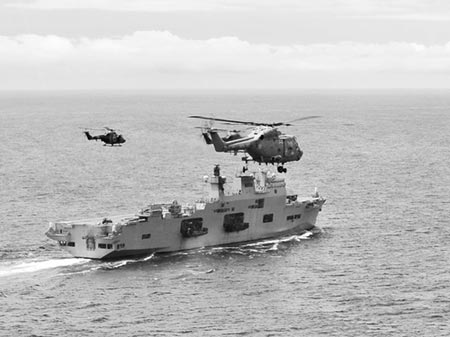 搭載有攻擊直升機(jī)的英國海軍“海洋”號兩棲攻擊艦
